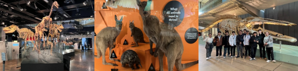 迎着淅淅沥沥的小雨,同学们走进皇家空军博物馆。观赏澳大利亚空军的历史,从各大战役到各类武器的探索,从那些破碎的零件中看到战争的残酷,从武器发展的背后看到历史的脚步,同学们课本知识融进脑海,从现场的模型中一遍遍的加强对理论的学习。博物馆内不仅有一些老式飞机,还展示了澳大利亚皇家空军在一二战中的表现。这里让团队印象比较深的一是一副从屁股中投下炸弹的袋鼠,用以艺术化地指代澳大利亚皇家空军的A-20轰炸机,只能说这一宣传画确实很有幽默感和乐观态度。