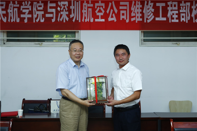 院长李玉龙教授与深圳航空有限责任公司维修工程部方文兵副总理签署了校企共建合作意向书。
