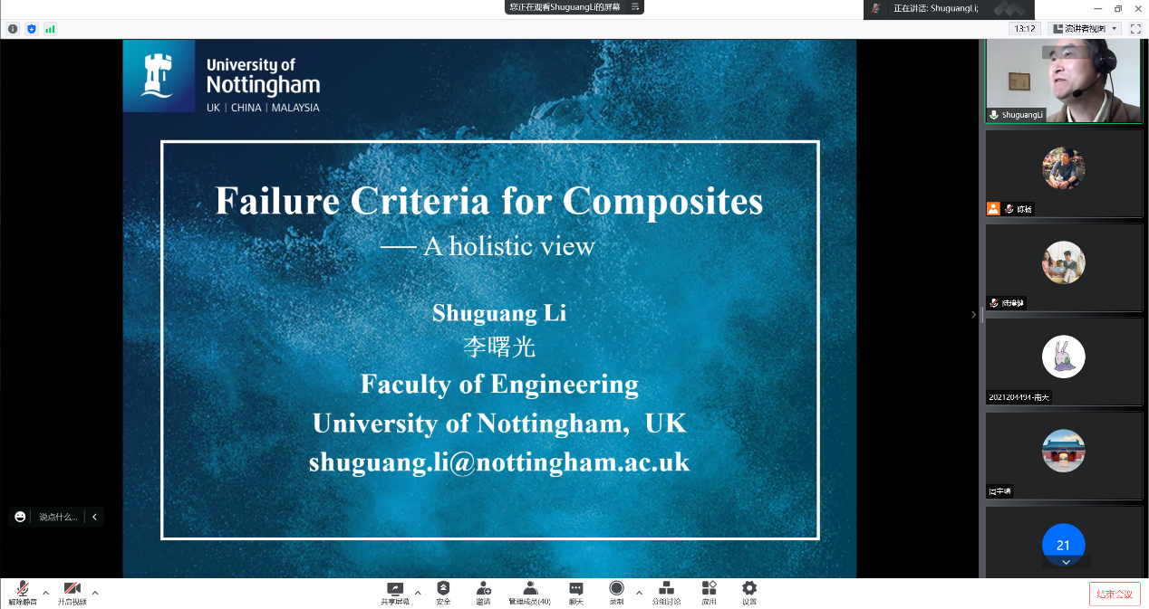 陈杨副教授邀请,英国诺丁汉大学李曙光教授于2022年7月4日至7日开展了题为“FailureCriteria for Composites”的线上学堂,本次课程依托肉漫画