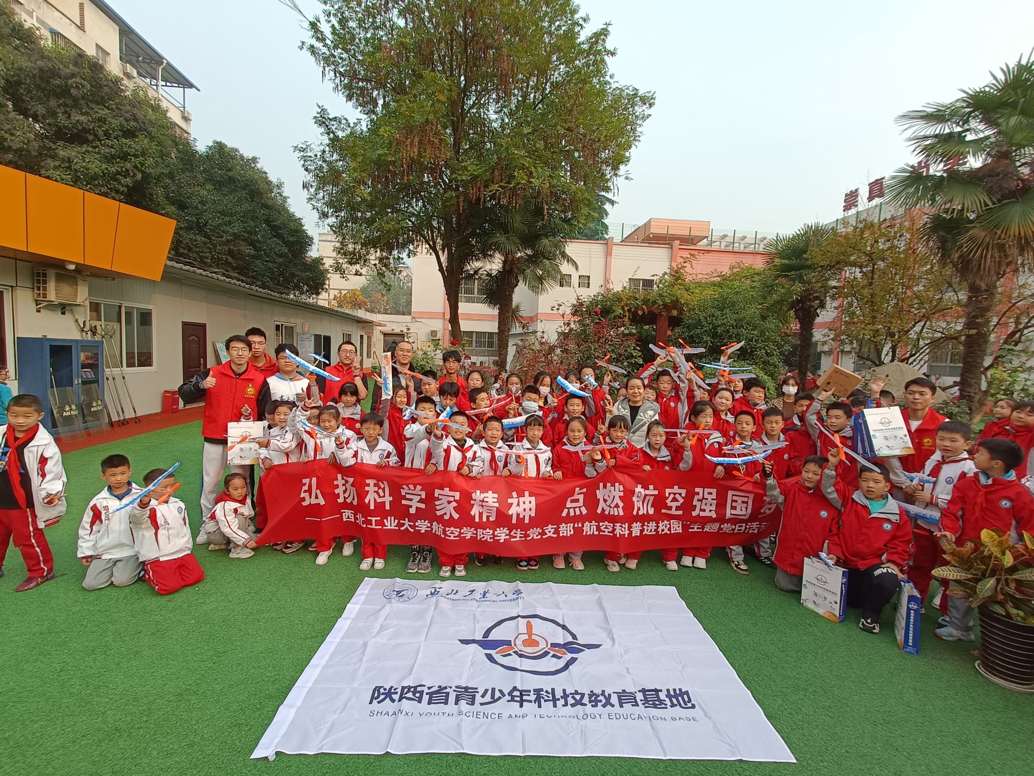的指导下,陕西省青少年科技教育基地积极开展了以“展开科学翅膀、放飞科学梦想”为主题的校园科普活动,先后走入宝鸡市石油中学、西安市高新区第三十四小学实地开展科普教育。活动以科普知识分享作为导入,将工程实践环节与理论学习相结合,构建多元化、实践型的科普活动形式,联合蓝堂科普教育团队共同探索合作模式,为不同年龄段的学生提供适龄的科普教育服务。活动为丰富中小学生校园生活,营造学科学、爱科学、讲科学、用科学的校园科普文化氛围贡献力量。