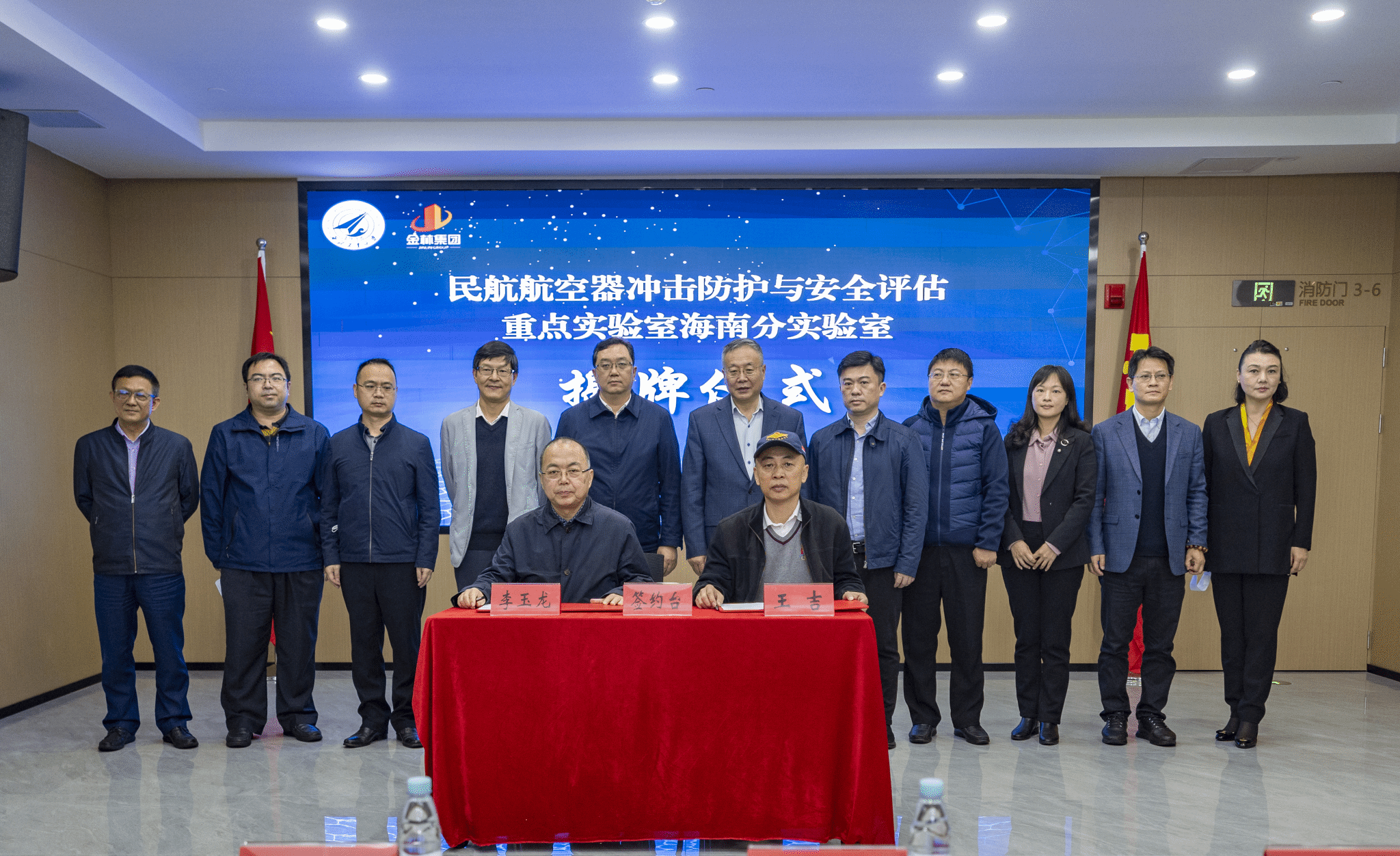 上午11:00,在海南金林集团多功能会议室召开了民航重点实验室海南分实验室签约仪式和揭牌仪式。海南省国资委党委书记马咏华、海南省委军民融合办副主任王挺、海南省委人才发展局副局长夏琛舸、海南省科技厅基础研究与重大专项处处长东方、海南省交通运输厅民用航空办公室主任王军青等参加了会议,会议由海南省金林集团总经理胡清群主持。