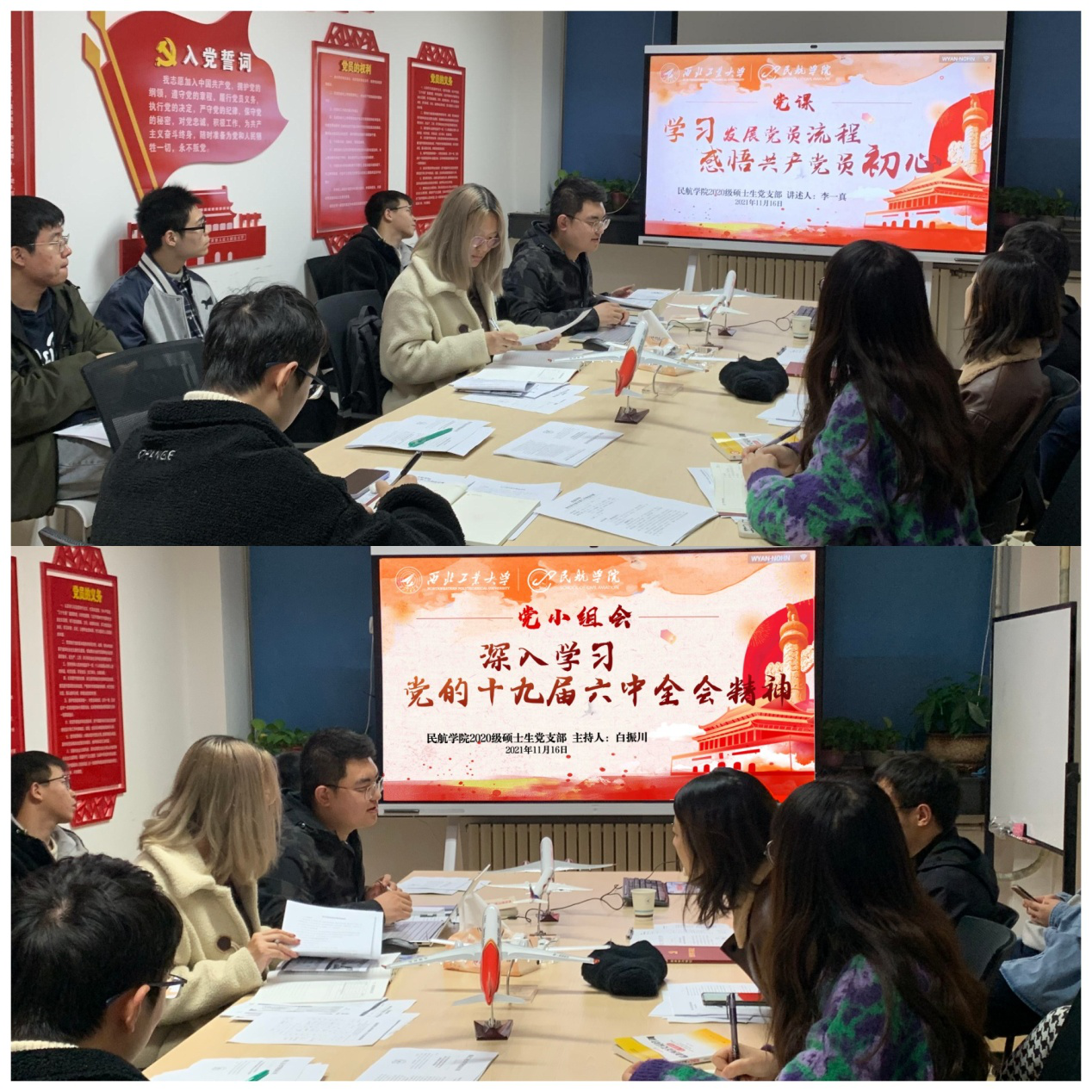2020级硕士生党支部在学院205会议室召开党小组会,并进行专题党课学习(扩大)会。支部党员和正在培养的入党积极分子共19人参加会议。