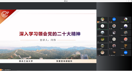 党总支副书记闫伟(主持工作)面向党总支理论学习中心组成员、全体党支部书记、辅导员和学院师生代表,以“深入学习领会党的二十大精神”为主题进行线上宣讲。