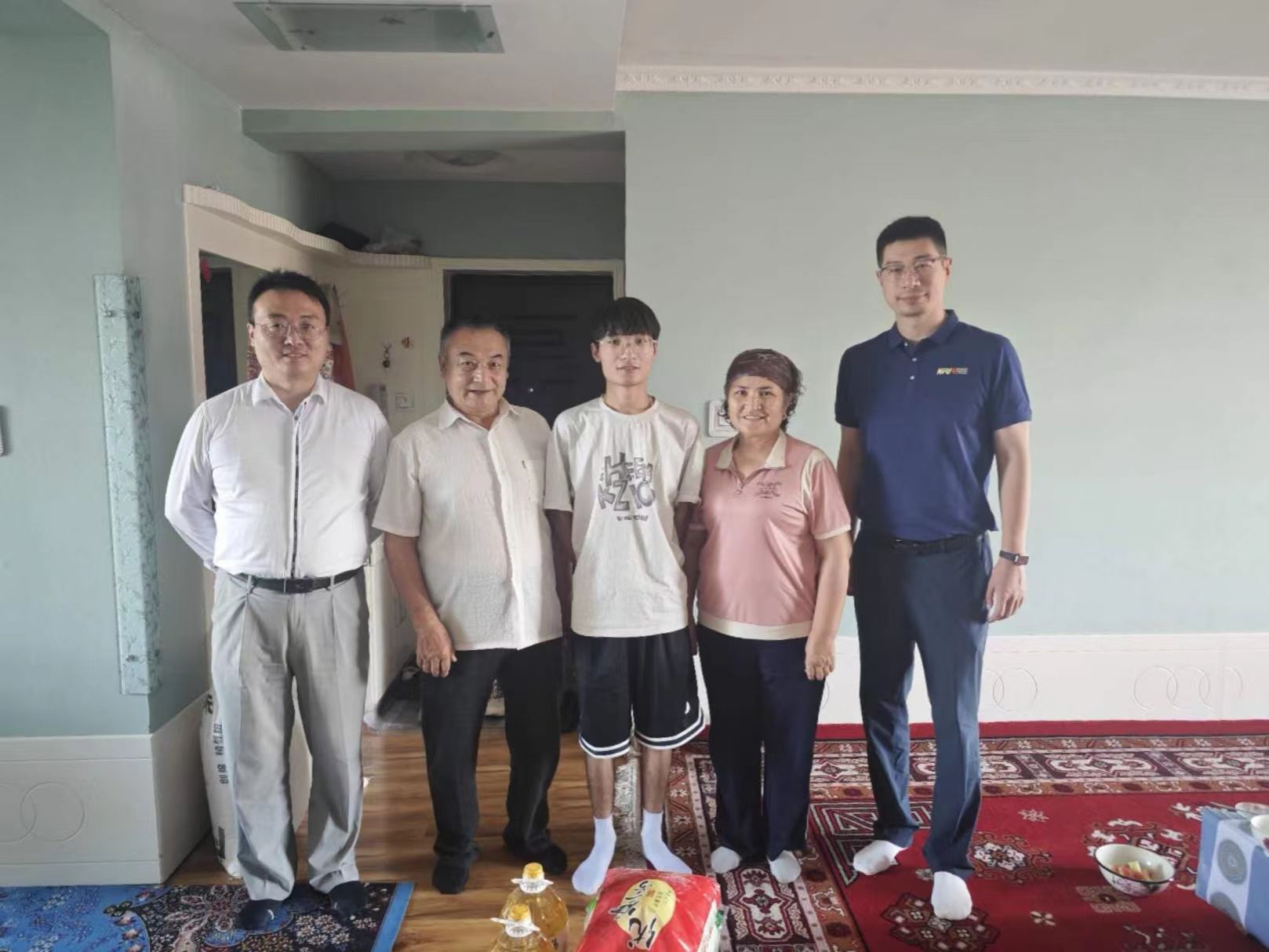 张龙就学校和学院的发展状况与办学目标、学校资助育人工作、学校总师育人文化、民航专业就业和升学状况等内容,与学生家长进行了亲切交流。房小捷就学生在学校的现实表现、校园生活、学校和新疆维吾尔自治区的交流合作、驻地城市西安的发展状况等情况,与学生家长进行了细致交流。同时,也听取了学生家长对学生培养的意见和建议。张龙代表学院向塔勒哈尔同学一家赠送了生活慰问品。