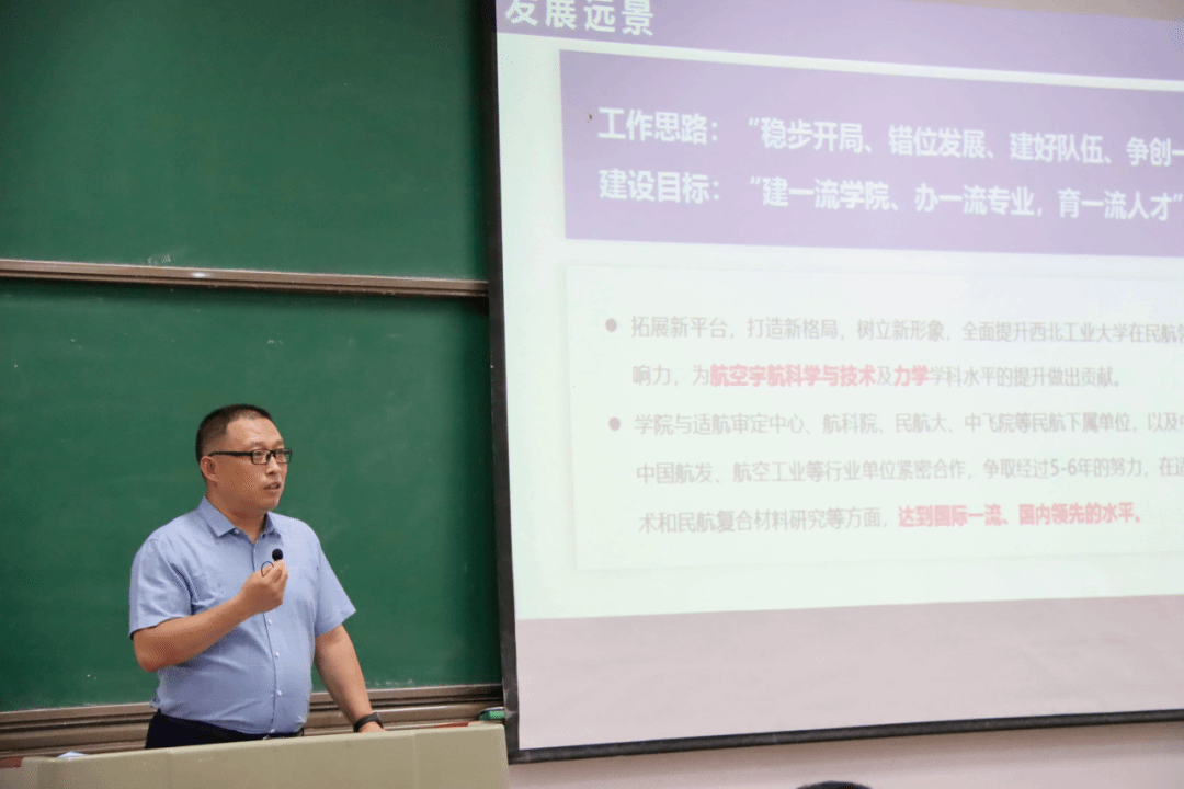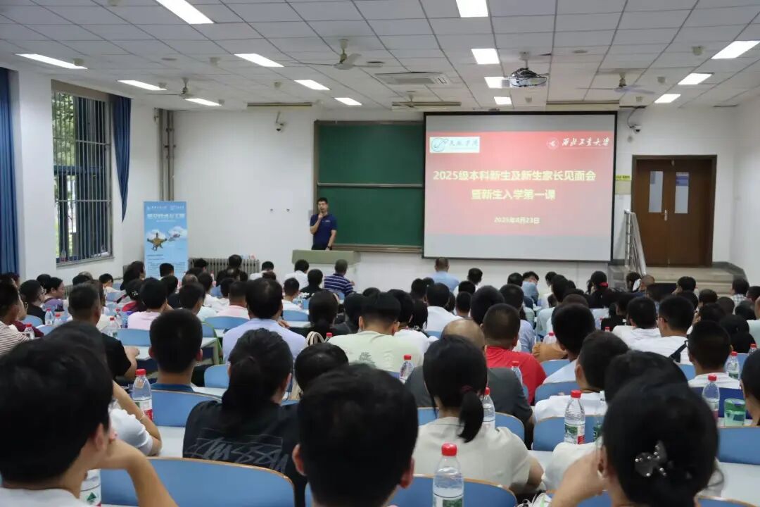 闫伟书记在给新生的讲课中介绍了学院师资队伍,并深入解读了西工大“愿意去、留得住、干得好”的就业现象和“总师育人文化”的内涵。他强调,西工大作为工信部重点高校,始终与国家战略同频共振。他还从家长角度表达了对新生家庭的理解与支持。