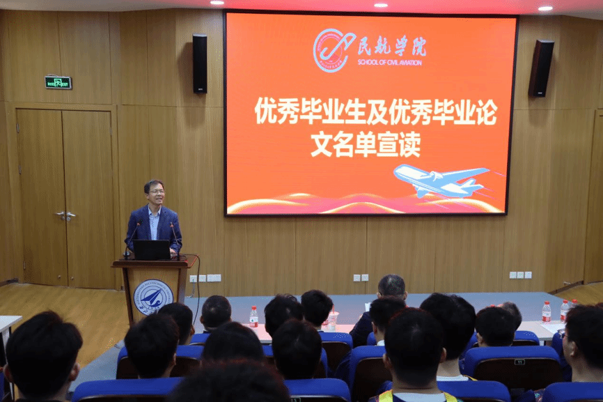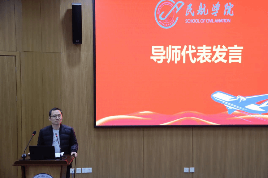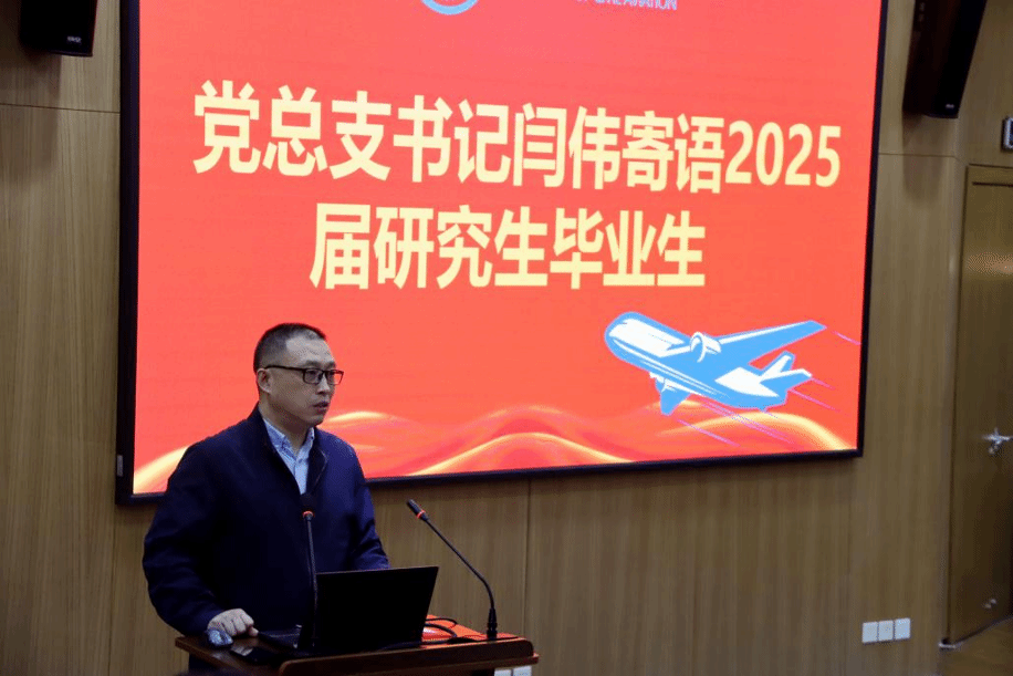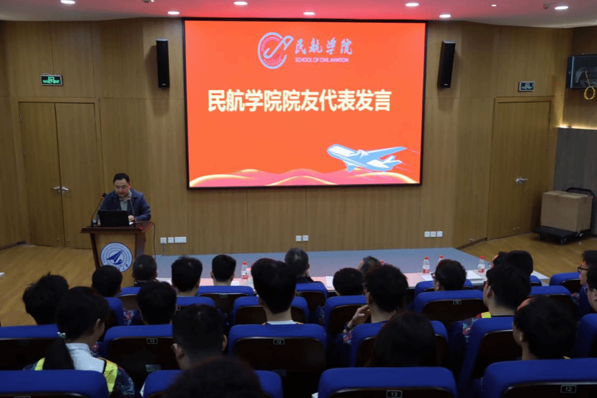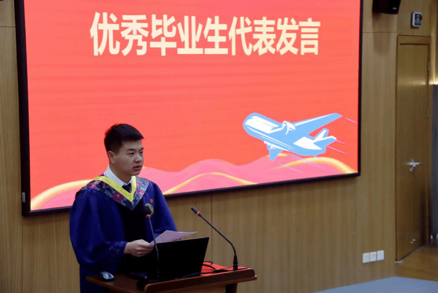 与每一位学子的成长始终同行。他还讲到在C919国产化、适航技术突破的时代背景下,希望毕业生继承和发扬校训精神与总师文化,勇于创新、敢于担当,将个人理想与国家航空事业紧密结合,为中国民航的崛起贡献智慧和力量。最后,他说:“母校永远是学子们坚实的精神港湾,未来也必将实现双向赋能,共同谱写航空强国的新篇章。”