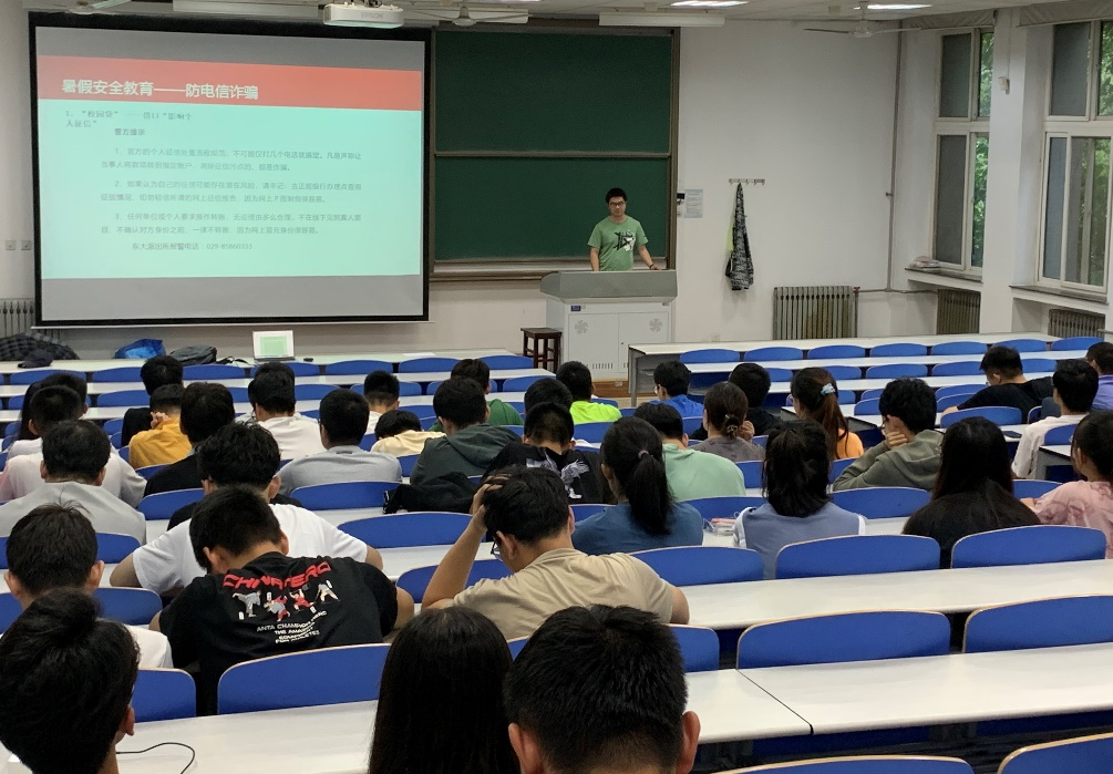 6月30日,学院在长安校区召开2021年暑期社会实践出征仪式暨暑期安全教育大会,2020级本科生辅导员吴宇、团工委副书记于露、学生会实践部负责人华潇潇以及学院管理的2020级大类全体学生参加。吴宇从交通、疫情、电信诈骗等方面对大家进行了暑假期间的安全教育,并强调了暑期安全注意事项,然后宣读了学校的疫情管理规定与教育部疫情管理规定,解读了学校学生违纪处分管理办法,包括违纪种类的讲解以及减轻处分加重处分的一些方法,其中重点陈述了关于网络发言不当、缺课缺勤等违纪行为。最后集体学习了中华人民共和国教育部令第12号《学生伤害事故处理办法》。