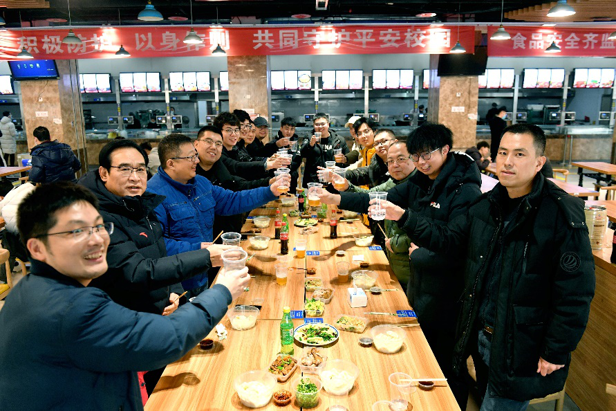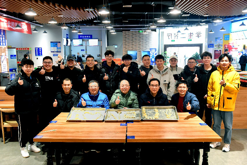 会议结束后,师生移步学生二餐厅,以包饺子的方式共迎新春佳节。大部分同学都是第一次在外过新年,部分同学还不会包饺子。老师们一边手把手教同学们包饺子,一边和大家拉家常。经过临时培训,最终每名同学都学会了至少一种饺子的包法。同学们把自己包好的饺子摆放成I爱NPU的形状,表达他们对学校的真挚情感。活动在师生们对彼此的良好祝愿和对新年的憧憬中圆满结束。