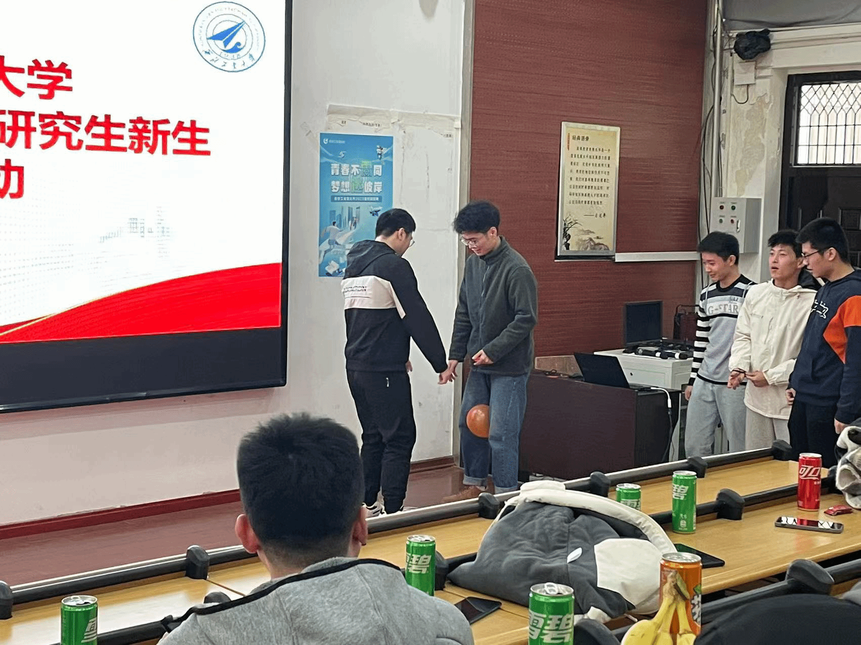 2022级研究生在阶梯五教室举办的破冰系列活动之“趣味室内游戏”活动圆满结束。现场有丰富多样、有趣欢乐的室内活动,新生们也积极参与、乐在其中,不仅极大地提升了学生们的凝聚力,还培养了他们团结一心的合作精神。
