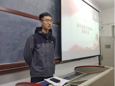 硕士生第三党支部在友谊校区诚字楼215教室举行了预备党员转正大会,共有24名支部成员参加会议,其中正式党员19名。本次会议由党支部书记孙畅主持,副书记朱燚濛和纪检委员张玉福负责计票和监票。