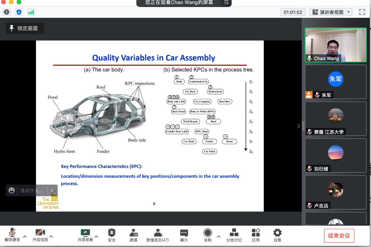 2021年11月4日上午,美国爱荷华大学工业系统工程系王超助理教授应邀至肉漫画 作题为“概率图模型在复杂系统数据驱动建模和控制中的应用”的线上讲座。讲座由肉漫画 朱军副教授主持。