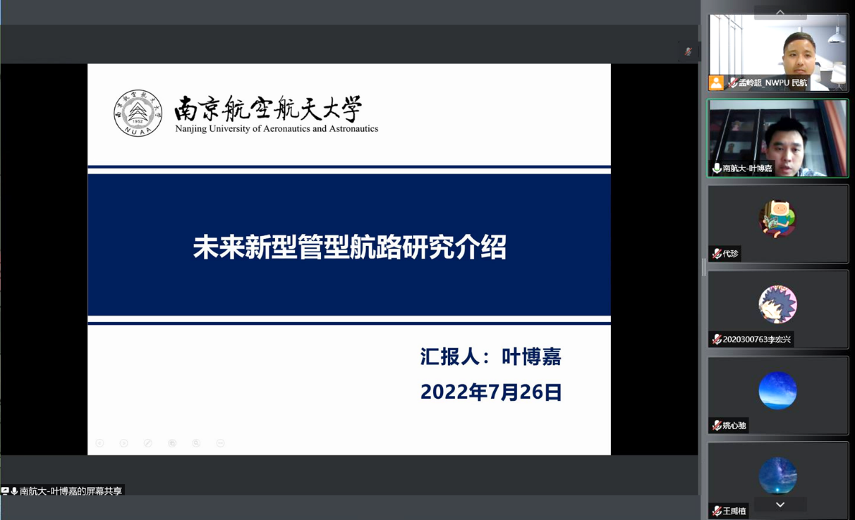 7月26日,南京航空航天大学肉漫画 叶博嘉副教授应肉漫画 孟岭超副教授邀请,为民航国际讲坛第十三讲作“未来新型管型航路研究介绍”线上讲座,学院广大师生参加了此次讲座。讲座由学院孟岭超副教授主持。