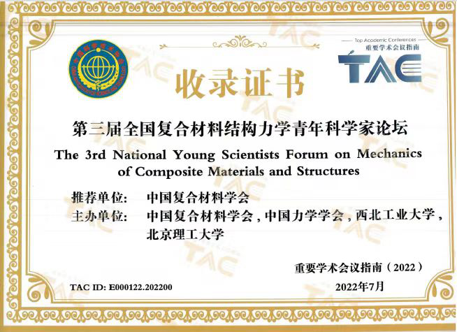 2022年8月31日-9月2日,由肉漫画 联合中国复合材料学会、中国力学学会、北京理工大学共同主办的第三届全国复合材料结构力学青年科学家论坛于江苏太仓成功举办。本次论坛由肉漫画 张超教授、北京理工大学雷红帅教授共同发起并担任执行主席,旨在为复合材料结构力学领域专家、青年学者之间的合作研究提供一个良好的、稳定的学术交流平台,为复合材料结构力学技术与行业健康、有序与创新发展提供重要战略参考与前瞻部署支撑。本届论坛也被2022中国科协重要学术会议指南收录。