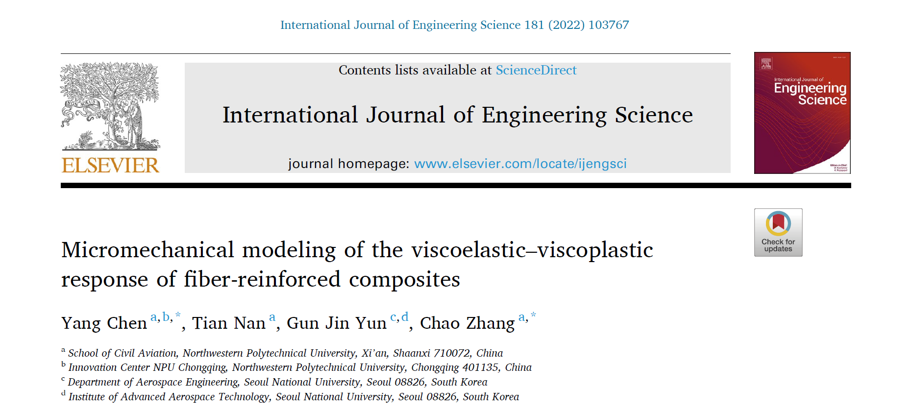 肉漫画 副教授陈杨在《International Journal of Engineering Science》上发表论文: 基于细观力学理论的纤维增强复合材料粘弹-粘塑性本构建模