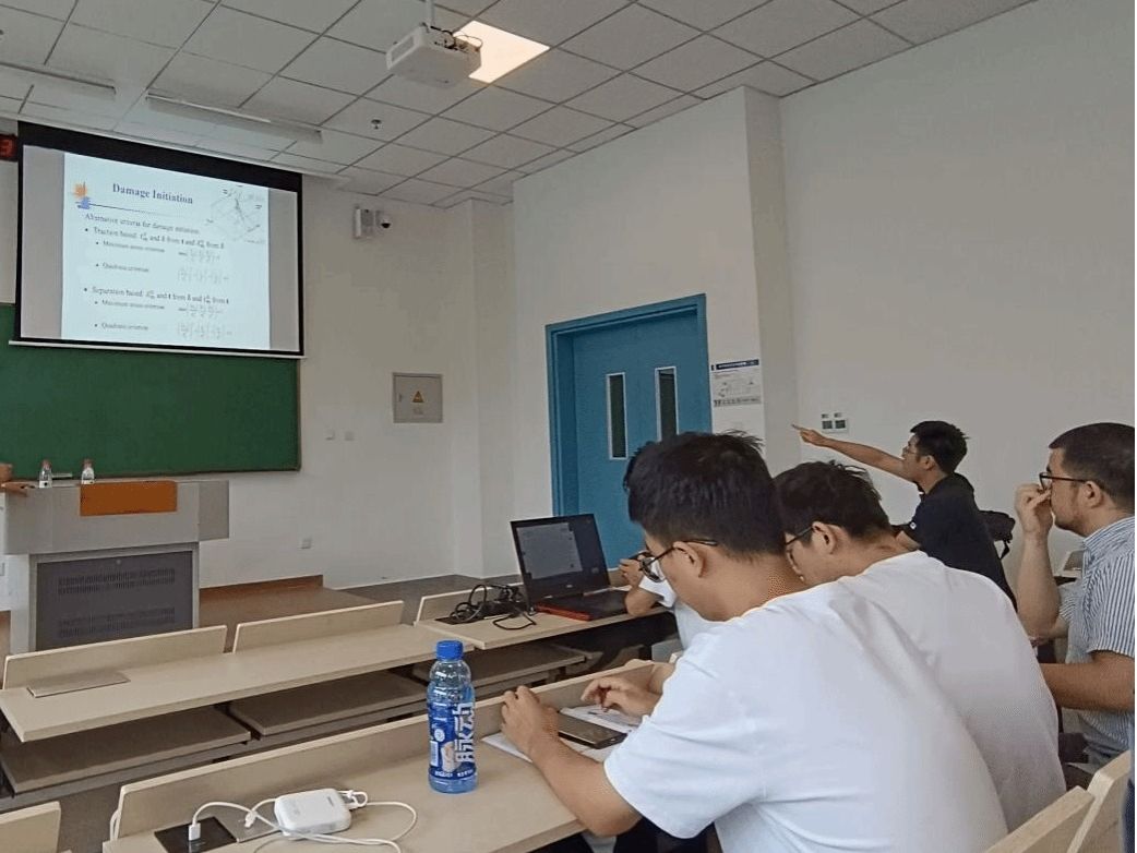 17日至21日,授课专家开展了丰富的教学内容的讲解,包括:带裂纹的层合板应力场分析,复合材料层合板的理性化渐进损伤模型,剪切非线性模型,复合材料层合板界面失效模型。在授课过程中,为了丰富和巩固所授内容,授课专家鼓励同学们积极提问,调动起在场同学的积极性,与他开展大量的课堂互动,课堂气氛热烈活跃。