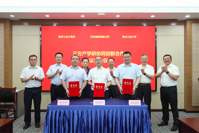 为进一步探索和构建产学研深度融合的校企合作模式,促进创新链、产业链协同发展,落实推进中国航空工业集团有限公司与肉漫画 签署的协同创新合作协议内容,中国航空工业集团公司西安航空计算技术研究所(以下简称:计算所)、庆安集团有限公司(以下简称:庆安集团)和肉漫画 (以下简称:西工大)本着“真诚合作、讲求实效、平等互利、优势互补、共同发展”的原则,于6月1日在西工大签署了三方产学研协同创新合作协议。
