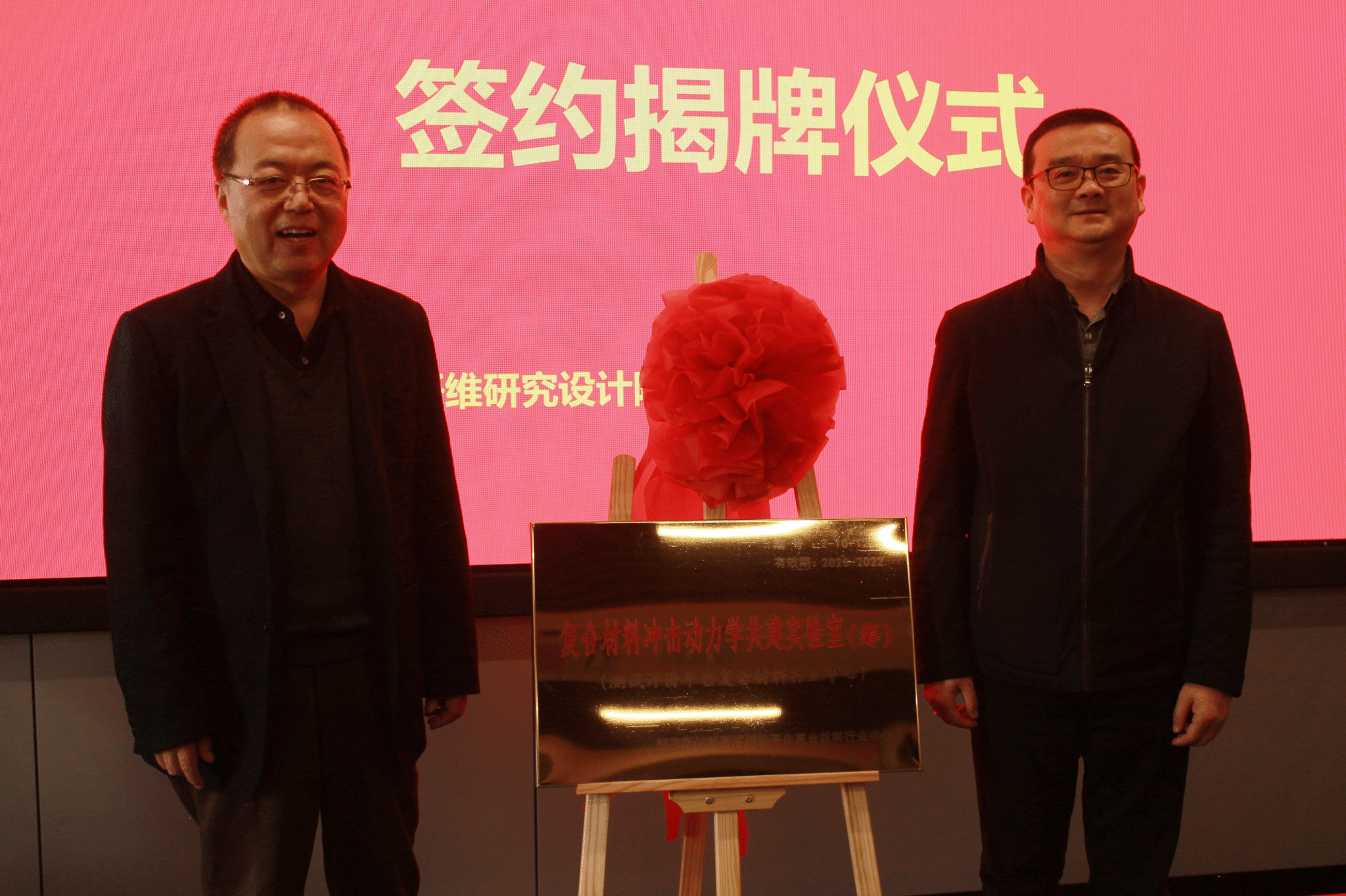 院长李玉龙和南京玻纤院院长王屹为“复合材料冲击动力学共建实验室”揭牌。
