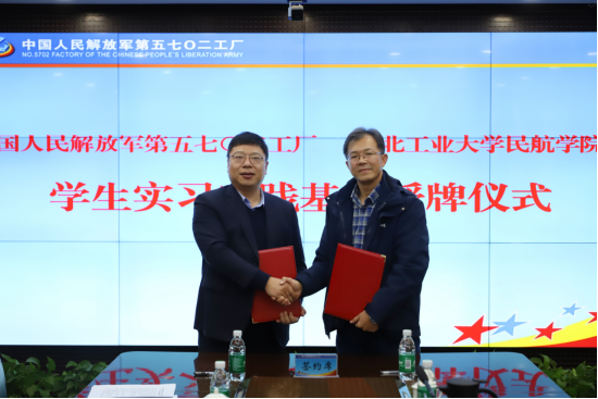 副院长张晓化、副书记张龙一行赴中国人民解放军第五七〇二工厂(以下简称5702厂)正式签署合作协议,共同成立学生实习实践基地并进行挂牌。5702厂副厂长兼总工程师任寿伟,人力资源部、技术部门相关负责人出席会议,会议由王冬冬主持。