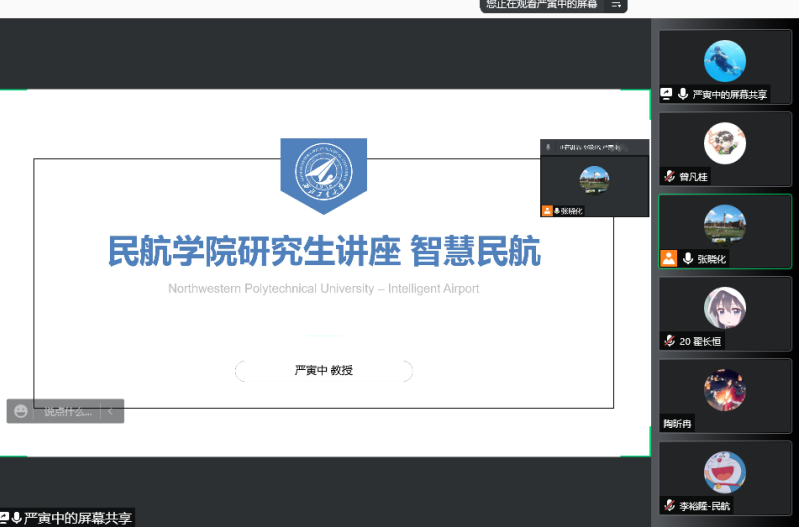 张永杰教授,严寅中教授,王林兵副教授,徐扬副教授以及沙明工助理教授,讲座由张晓化副院长主持,各年级本科生、部分青年教师和硕博士研究生线上参加。