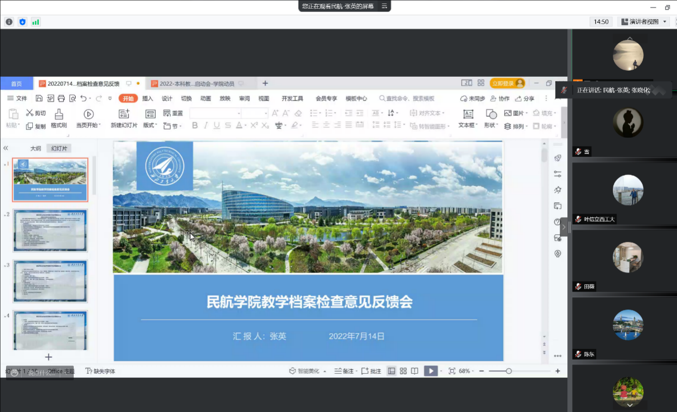 学院本科生教学秘书张英针对学校教学档案检查的情况做了汇报,重点就试卷以及本科教学档案材料目录作出详细说明。