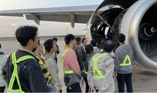 为进一步推进校企协同育人纵深发展,强化学生对所学专业的认知,拓宽学生视野,提升专业素养和实践能力。学院组织2021级本科生前往深航西安分公司进行认识实习,本次实习将分三批在深航西安分公司基地、西安咸阳国际机场航空器活动区维修现场开展。11月3日,第一批前往深航西安分公司维修部进行认识实习。本次实习由学院副书记袁源、班主任张天伟老师带队。