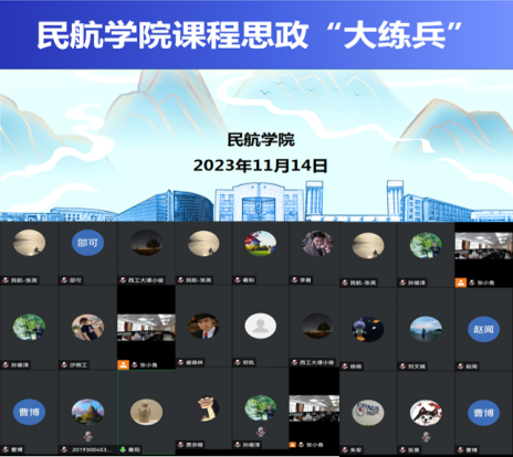 于2023年11月14日,在友谊校区毅字楼218会议室,举行以“‘总师育人文化’大家讲”为主题的“课程思政大练兵”活动。活动由教学副院长张晓化主持,学院课程思政“大练兵”活动专家评审小组及全院教师参加。