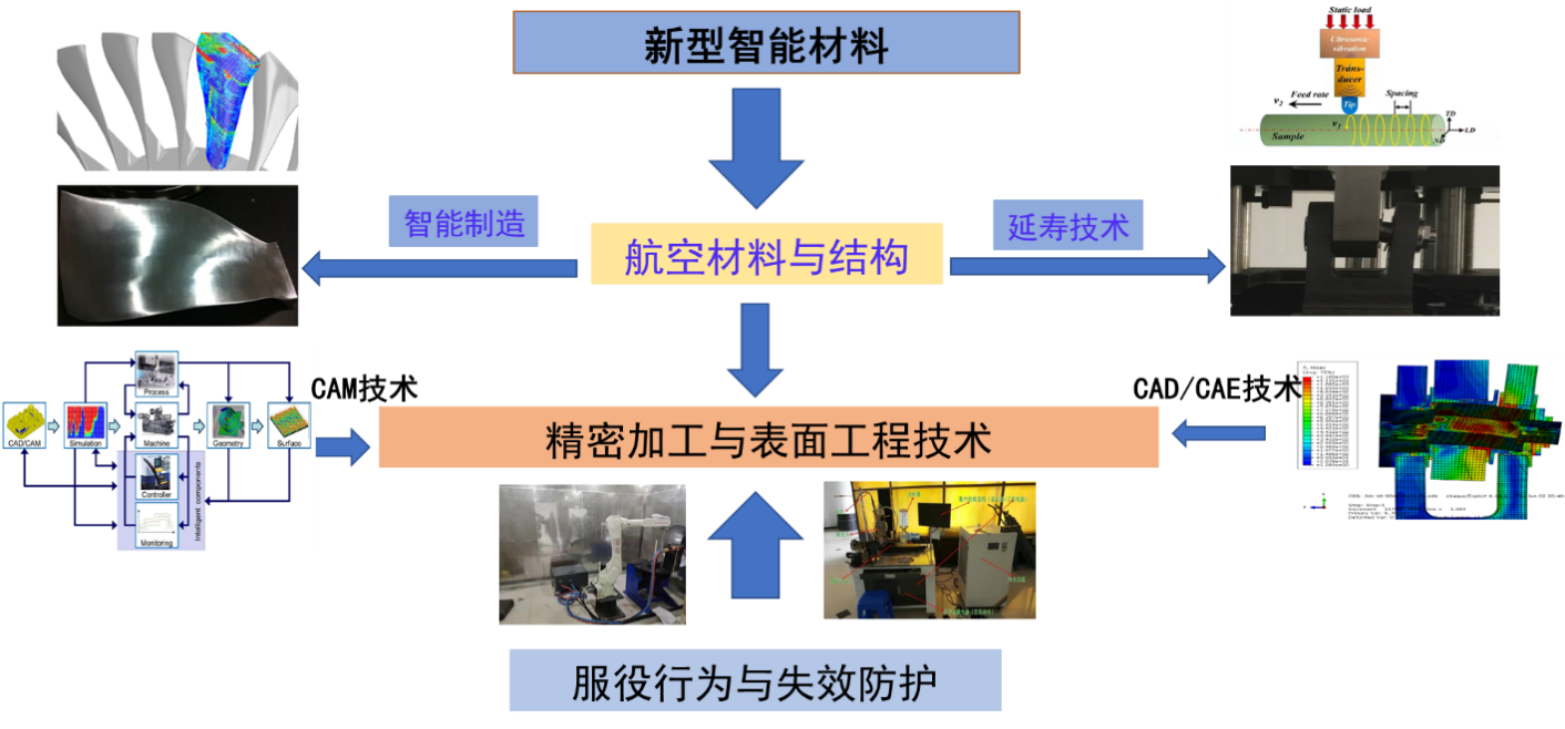可持续航空材料研究中心面向材料科学与工程、机械工程等大类学科,以航空材料腐蚀防护和表面工程、航空材料与结构延寿技术、复合材料可持续适航等的研究为主要特色,开展关键航空材料服役行为与腐蚀机理、强韧化理论与疲劳失效机理、表面改性与涂层技术、精密加工与损伤修复、新型智能材料等领域的科学研究。