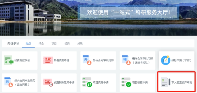 2. 办理地址:登录翱翔门户,点击“科研系统”进入系统肉漫画;在肉漫画办理事项栏选择“不入固定资产审批”。